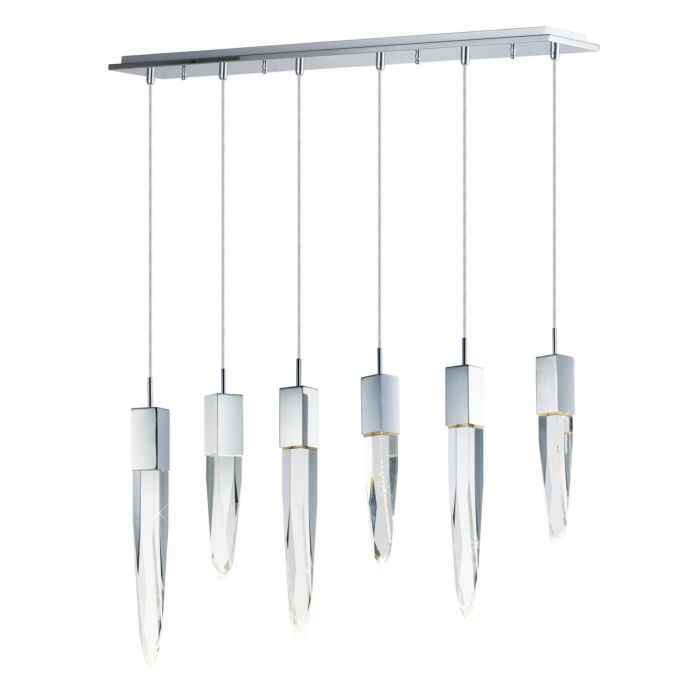 This Quartz 6-Light LED Pendant in Polished Chrome is manufacturered by ET2 Lighting- Measures 21"H x 6.00" L x 39.25" W