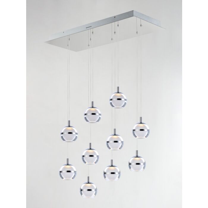 This 10-Light Pendant from ET2 is part of the Swank collection. It comes in a Polished Chrome finish.- Measures 5.50" H x 31.25" L x 12.50" W