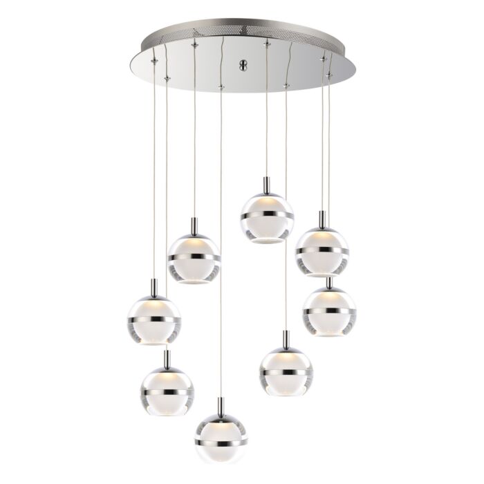 This 8-Light Pendant from ET2 is part of the Swank collection. It comes in a Polished Chrome finish.- Measures 5.50" H x 19.00" L x 19.00" W
