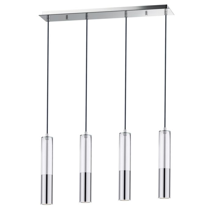This 4-Light Linear Pendant from ET2 is part of the Torch collection. It comes in a Polished Chrome finish.- Measures 14.75" H x 28.00" L x 6.00" W