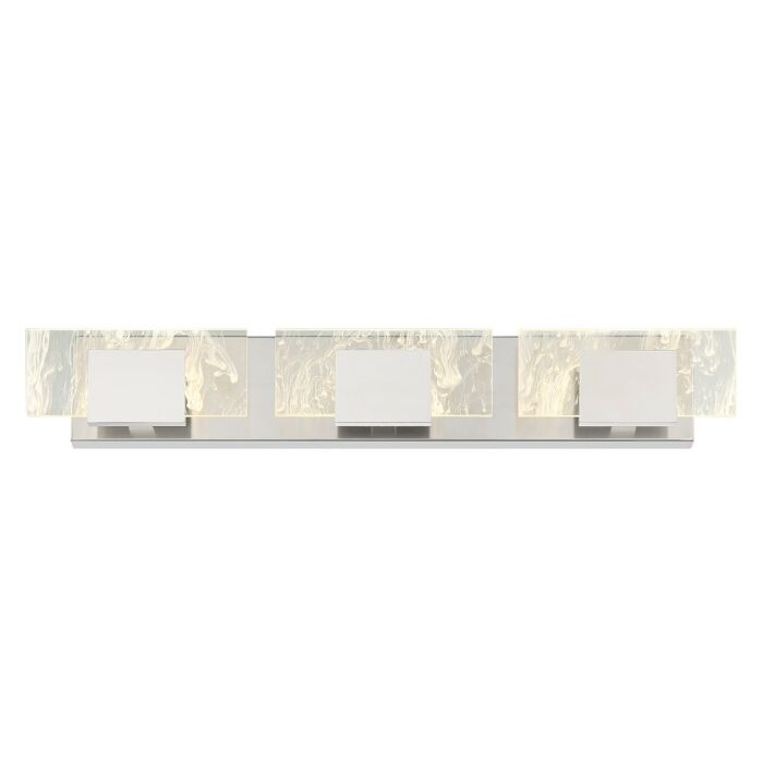 This Kasha 3-Light LED Bathroom Vanity Light in Chrome And Nickel is from Eurofase- 4.25H x 27.75" W