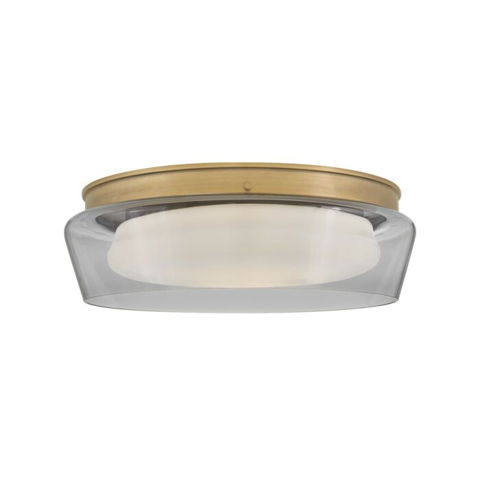 Sleek with a modern, low-profile silhouette, Demi's thick, smoked glass shade surrounds etched opal glass, creating a sophisticated effect as light diffuses from dimmable integrated LEDs. A robust canopy complements the glass with a Heritage Brass or Black Oxide finish.