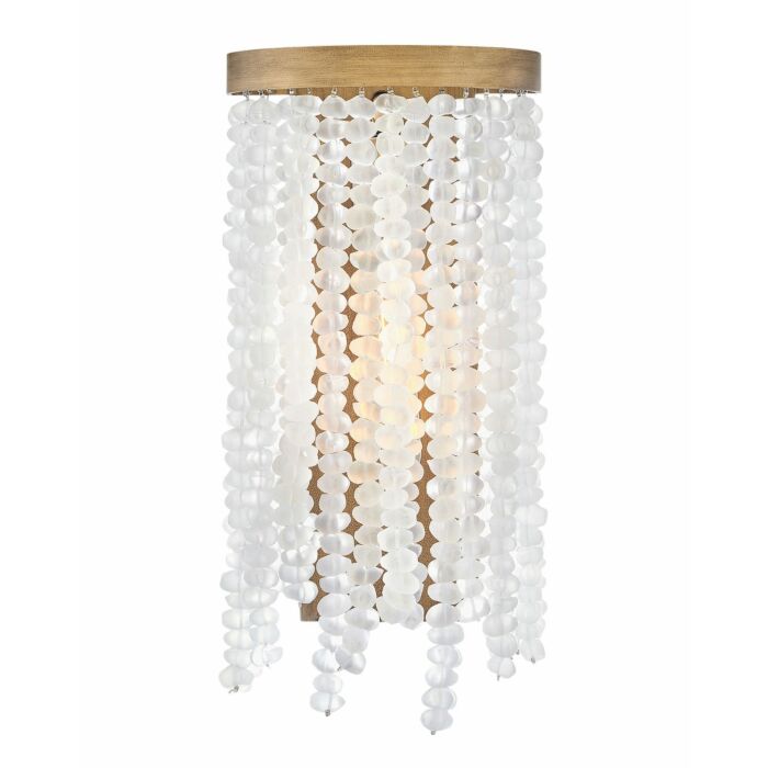 Dune's bohemian chic design showcases strands of soft white sea glass combined with a Burnished Gold finish. The designs blend a sophisticated silhouette with organic elements inspired by sun and surf. Dune infuses any space with a timeless, mesmerizing elegance.
