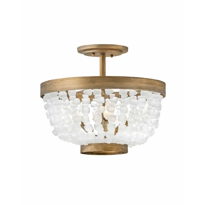 Dune's bohemian chic design showcases strands of soft white sea glass combined with a Burnished Gold finish. The designs blend a sophisticated silhouette with organic elements inspired by sun and surf. Dune infuses any space with a timeless, mesmerizing elegance.