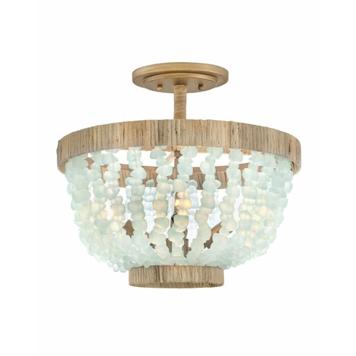 Fredrick Ramond Dune 4-Light Semi-Flush Ceiling Light In Burnished Gold With Blue Sea Glass