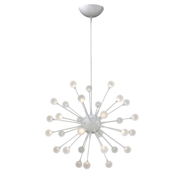Impulse is a dynamic LED design with a striking contemporary shape. Petite stems radiate from the spherical body while miniature acrylic ornaments of light glow at its tips. An array of chic finishes in Polished Chrome, Polished Gold, Black Chrome, and Cloud (White) intensifies its stunning effect.