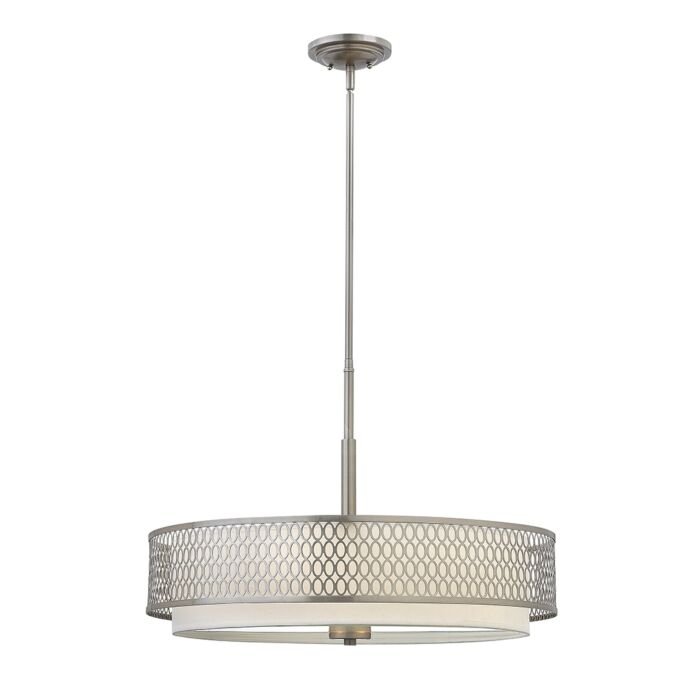 Jules features a repeating stamped oval design in a luxe Brushed Gold or Brushed Nickel finish. This striking pattern play creates a statement-making transitional silhouette.