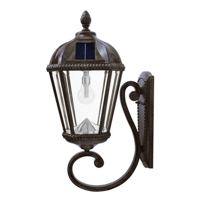 This 1-Light Wall Lantern from Gama Sonic is part of the Royal Bulb Solar Lamp Series collection. It comes in a Weathered Bronze finish.- Measures 21.00" H x 8.75" L x 12.50" W