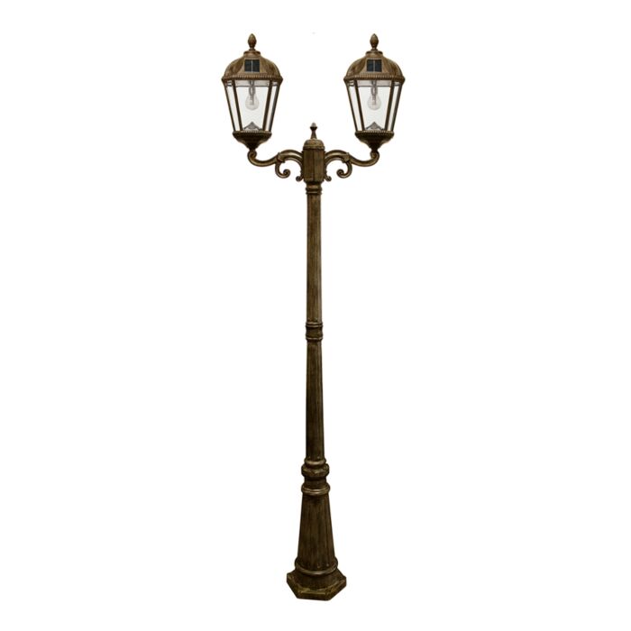 This 2-Light Post Light from Gama Sonic is part of the Royal Bulb Solar Lamp Series collection. It comes in a Weathered Bronze finish.- Measures 89.00" H x 27.00" L x 8.75" W
