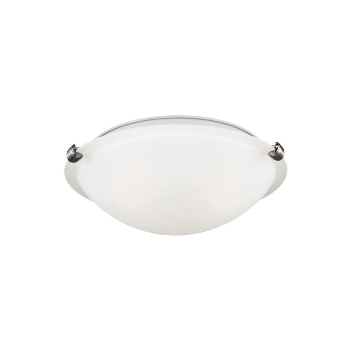 Short Description: The Clip Ceiling Flush Mount two light flush mount fixture in brushed nickel provides abundant light to your home, while adding style and interest. The clip ceiling flush mount fixtures by provide a clean, contemporary look popular in commercial and residential settings. Offered in two-light and three-light options, the Satin Etched glass is held securely in place with Three Brushed Nickel clips slide the spring-tension clip out for easy glass cleaning and bulb changing. Available in incandescent lamping, ENERGY STAR-qualified LED lamping, and integrated LED.