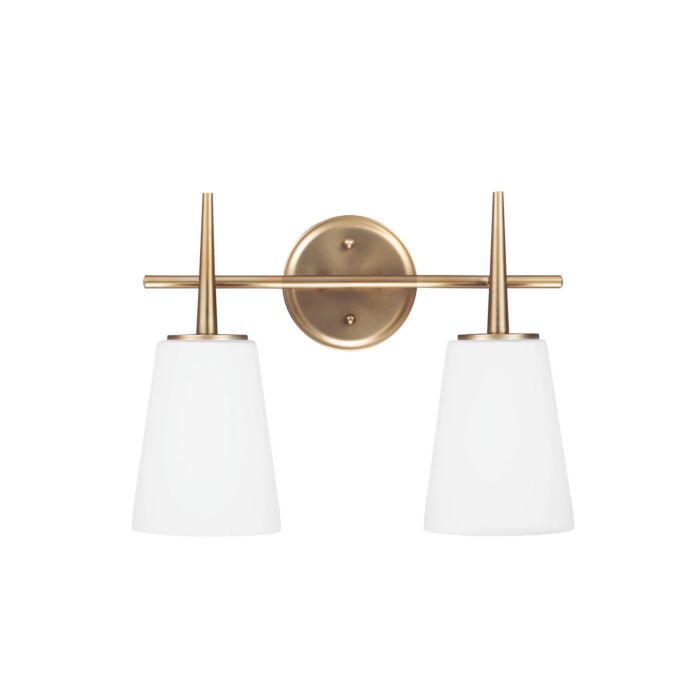This 2-Light Wall Bath Fixture from Generation Lighting. is part of the Driscoll collection. It comes in a Satin Brass finish.
