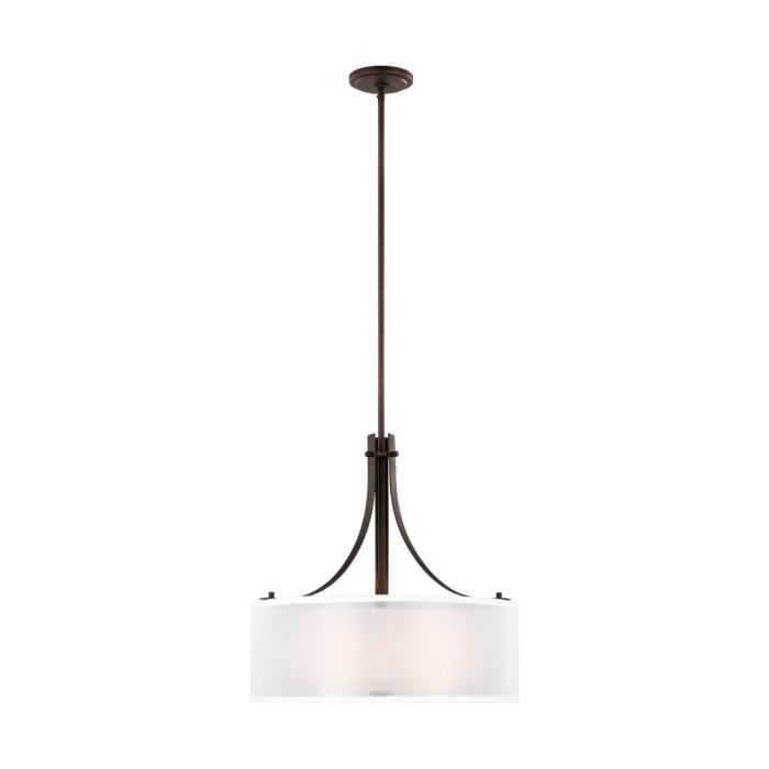 Short Description: The Elmwood Park three light indoor pendant in bronze is the perfect way to achieve your desired fashion or functional needs in your home. Elmwood Park by has clear glass tube shades with an inner white glass element that softens the light and helps cast an even glow. A cylinder of etched glass is centered within a larger cylinder of clear glass which encircles each light bulb to create this stunning visual effect. The full assortment includes three-, five-and nine-light chandeliers, a four-light linear, one-light mini pendant, a three-light pendant, a two-light semi flush which is convertible into a pendant, and one-, two-, three- and four-light bath fixtures. All fixtures offered in either a Brushed Nickel or Brushed Oil Rubbed Bronze. Incandescent and ENERGY STAR-qualified LED lamping are available, all fixtures are California Title 24 compliant.