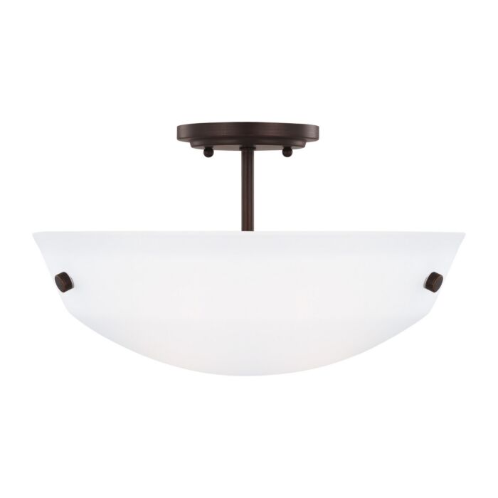 Short Description: The Kerrville two light indoor semi-flush convertible in bronze supplies ample lighting for your daily needs, while adding a layer of today's style to your home's dcor. With a simple, airy appearance, the Kerrville lighting collection by embraces its modern design roots while enhancing virtually any homes decor. Tubular steel arms extend outward and curve to present beautiful tapered, Satin Etched glass shades. The collection has a Brushed Nickel, Burnt Sienna or Chrome finish and offers three-, five- and nine-light chandeliers, a one-light mini pendant, one- and three-light pendants, a two-light semi-flush mount which can convert to a pendant, and one-, two-, three- and four-light bath fixtures. Incandescent and ENERGY STAR-qualified LED lamping are available, all fixtures are California Title 24 compliant.