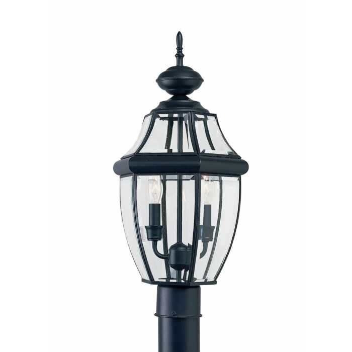 Short Description: The Lancaster two light outdoor post top in black has a way of sparkling against glass to create a warm and inviting welcome, and is a classic example of traditional design. Clear curved beveled glass is paired with one of four beautiful finish options including Polished brass, Black, Antique Bronze and Antique Brushed Nickel. The assortment includes small, medium and large one-light outdoor wall lanterns, two-light outdoor wall lantern, three-light outdoor wall lantern, two-light and three-light outdoor post lanterns and a three-light outdoor pendant.