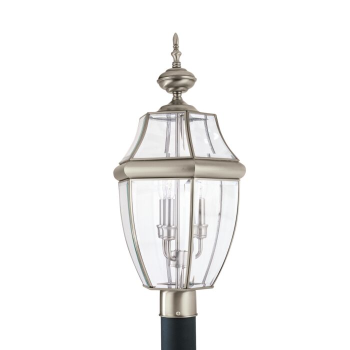 Lancaster 3-Light Outdoor Post Lantern in Antique Brushed Nickel