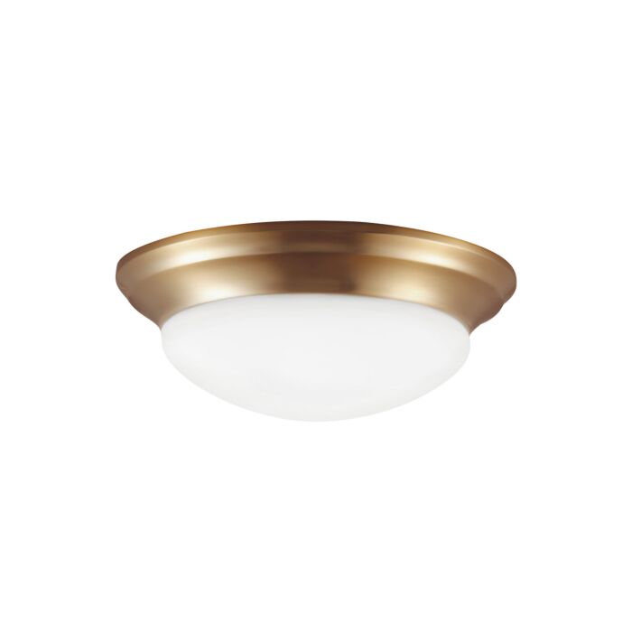 Short Description: The Nash one light flush mount fixture in satin brass is an ENERGY STAR qualified lighting fixture that uses LED bulbs to save you both time and money. The Nash flush mount ceiling fixtures by provide a clean, subtle look with a designer finish. Offered in Chrome, Brushed Nickel, Satin Bronze, White and Heirloom Bronze finishes, the assortment includes one-light, two-light and three-light flush mounts. Installation and bulb changing is easy with a twist and lock glass shade - no screws or glass holders to lose. Incandescent, Integrated LED, and ENERGY STAR-qualified LED lamping are available. All fixtures are Damp Rated and California Title 24 compliant.