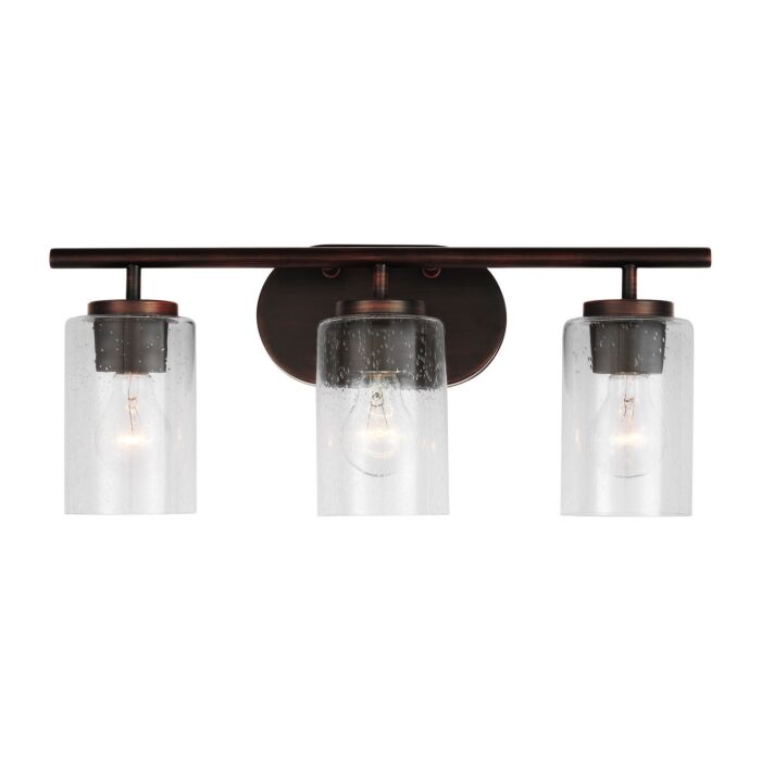 This Oslo 3-Light Bathroom Vanity Light in Bronze is manufacturered by Generation Lighting- Measures 8.5"H x 20.00" W