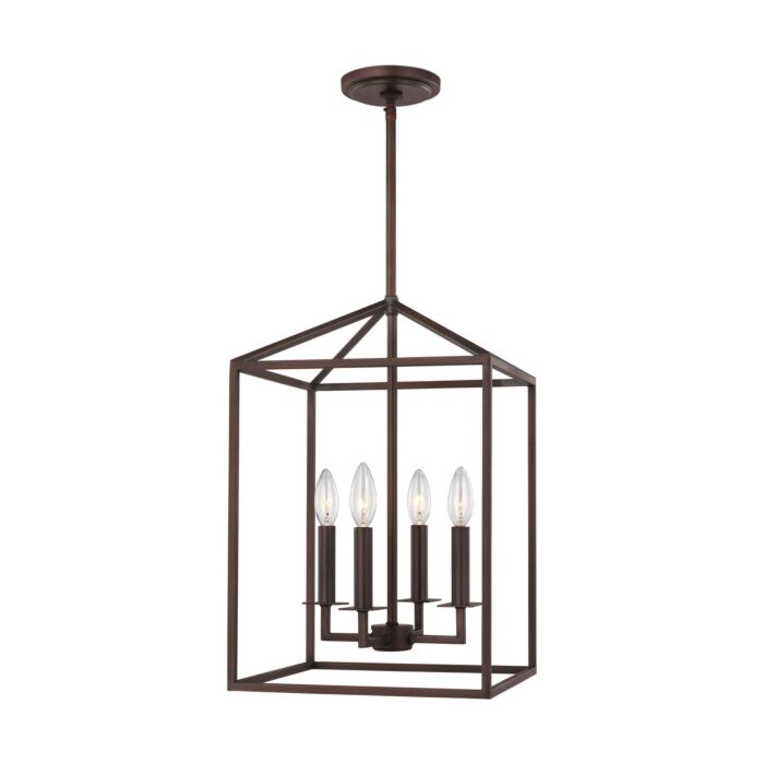 Short Description: The transitional Perryton pendant lights by are inspired by stately carriage lanterns. The updated open frame is formed with sleek square steel tubing, and each pendant is a generously proportioned, minimalist silhouette completed in either Midnight Black or Bronze finishes. Offered are small and large four-light hall/foyer pendants, an eight-light hall/foyer pendant and an eight-light island pendant. Incandescent candelabra base lamping. Damp rated, Perryton is also ideal as a focal point on a covered patio or porch.