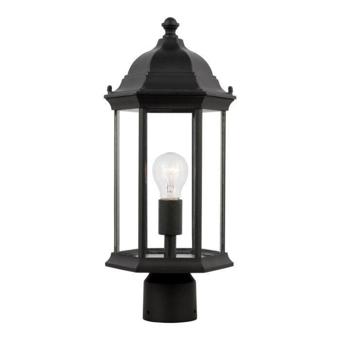 Short Description: The Sevier one light outdoor post top in black creates a warm and inviting welcome presentation for your home's exterior. The Sevier outdoor collection by brings timeless design to new heights with its traditional design details found in classic outdoor fixtures as well as an open bottom for easy maintenance. Made of durable cast aluminum, a multi-level crown, top finial and stepped-edge back plate complete the traditional look. Offered in Antique Bronze or Black finish, both with Clear glass, the collection includes a one-light outdoor pendant, one-light post lantern, a large one-light up light outdoor wall lantern, a small one-light up light outdoor wall lantern, a small one-light downlight outdoor wall lantern, and a large one-light downlight outdoor wall lantern.