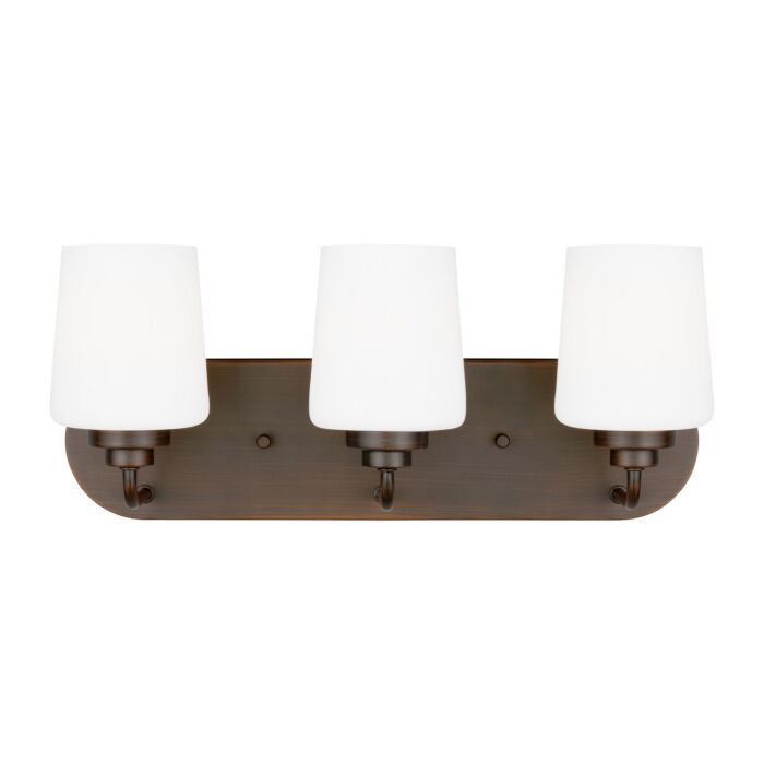 This Windom 3-Light Bathroom Vanity Light in Bronze is manufacturered by Generation Lighting- Measures 7.5"H x 18.00" W