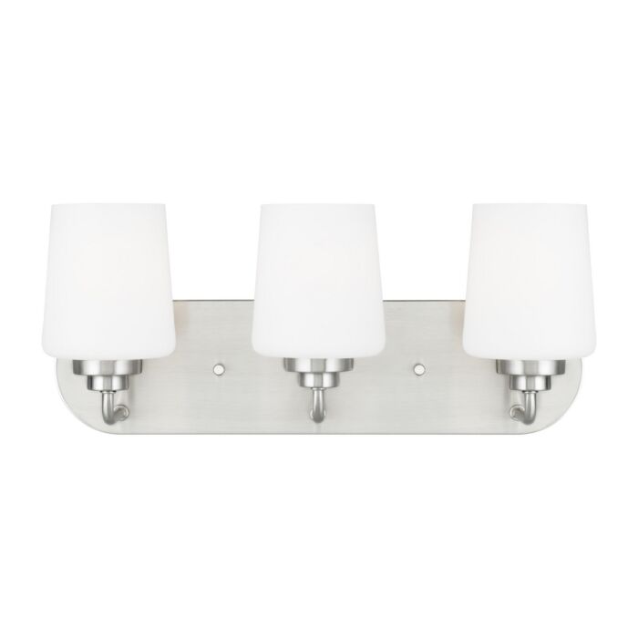 This Windom 3-Light Bathroom Vanity Light in Brushed Nickel is manufacturered by Generation Lighting- Measures 7.5"H x 18.00" W
