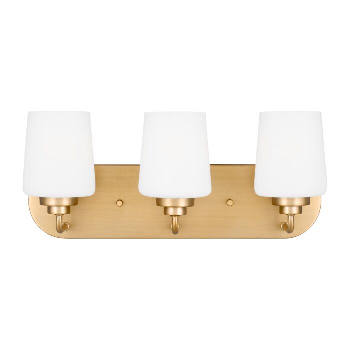 This Windom 3-Light Bathroom Vanity Light in Satin Brass is manufacturered by Generation Lighting- Measures 7.5"H x 18.00" W
