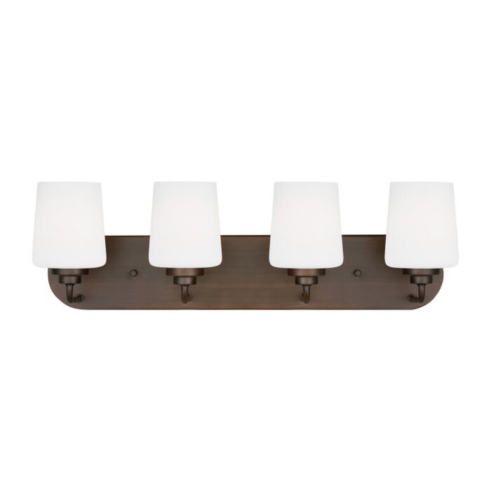 This Windom 4-Light Bathroom Vanity Light in Bronze is manufacturered by Generation Lighting- Measures 7.5"H x 24.38" W
