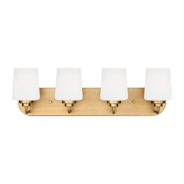 This Windom 4-Light Bathroom Vanity Light in Satin Brass is manufacturered by Generation Lighting- Measures 7.5"H x 24.38" W