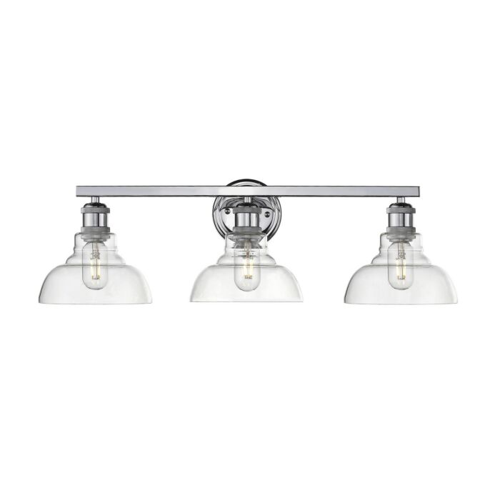 This Carver 3-Light Bathroom Vanity Light in Chrome is manufacturered by Golden Lighting- Measures 8.63"H x 27.5 W