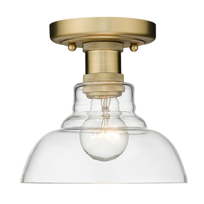 This Carver Bcb 1-Light Flush Mount Ceiling Light in Brushed Champagne Bronze is manufacturered by Golden Lighting- Measures 7"H x 7.50" L x 7.50" W