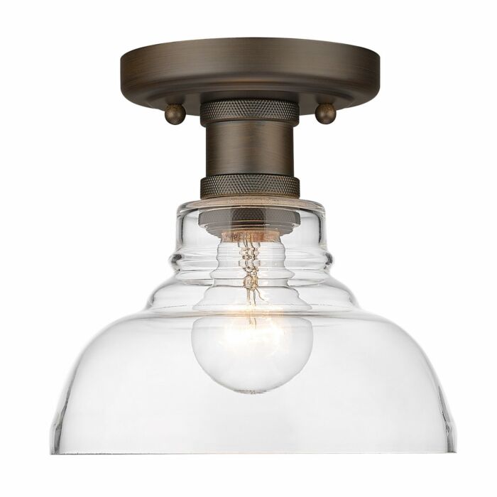 This Carver Rbz 1-Light Flush Mount Ceiling Light in Rubbed Bronze is manufacturered by Golden Lighting- Measures 7"H x 7.50" L x 7.50" W