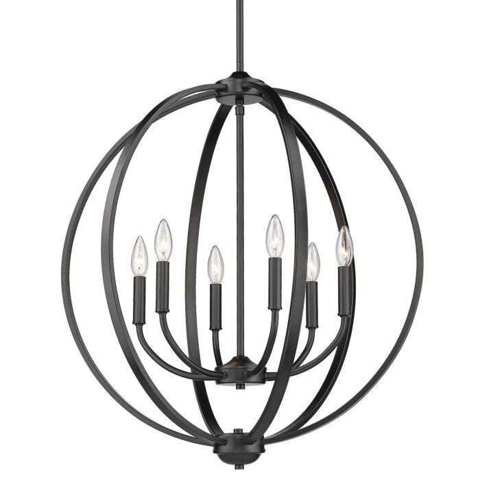 This 6-Light Chandelier from Golden is part of the Colson collection. It comes in a Matte Black finish.- Measures 28.75" H x 26.00" L x 26.00" W