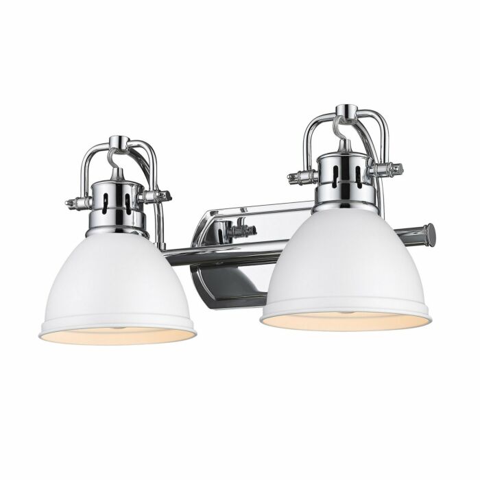 This 2-Light Vanity Light from Golden is part of the Duncan collection. It comes in a Chrome finish.- Measures 8.50" H x 16.50" W