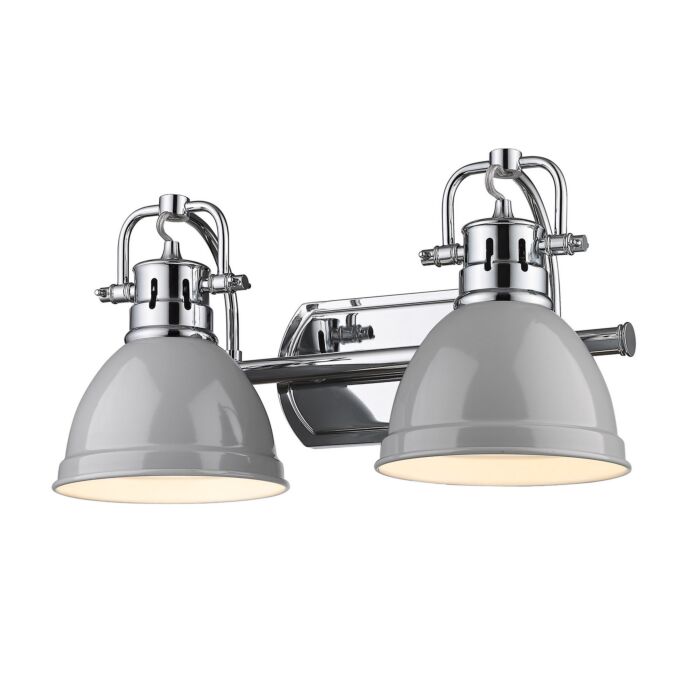 This Duncan Ch 2-Light Bathroom Vanity Light in Chrome is manufacturered by Golden Lighting- Measures 8.5"H x 16.50" W
