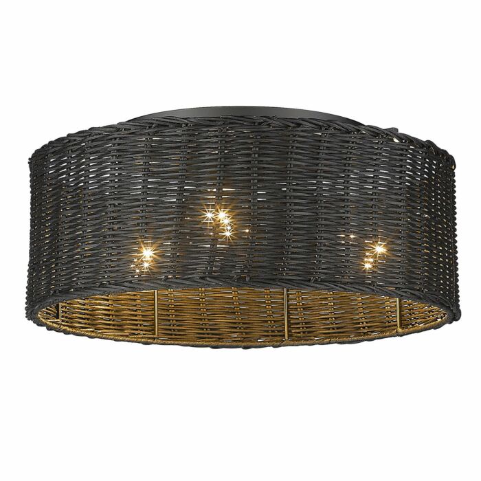 This Erma 3-Light Flush Mount Ceiling Light in Matte Black is manufacturered by Golden Lighting- Measures 7.5"H x 16.38" L x 16.38" W