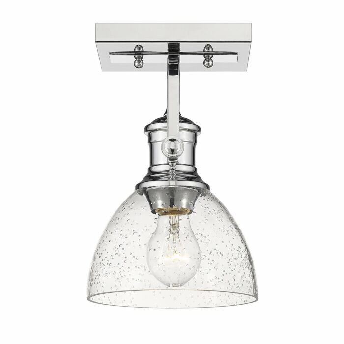 This 1-Light Semi-flush from Golden is part of the Hines collection. It comes in a Chrome finish.- Measures 10.38" H x 6.88" L x 6.88" W