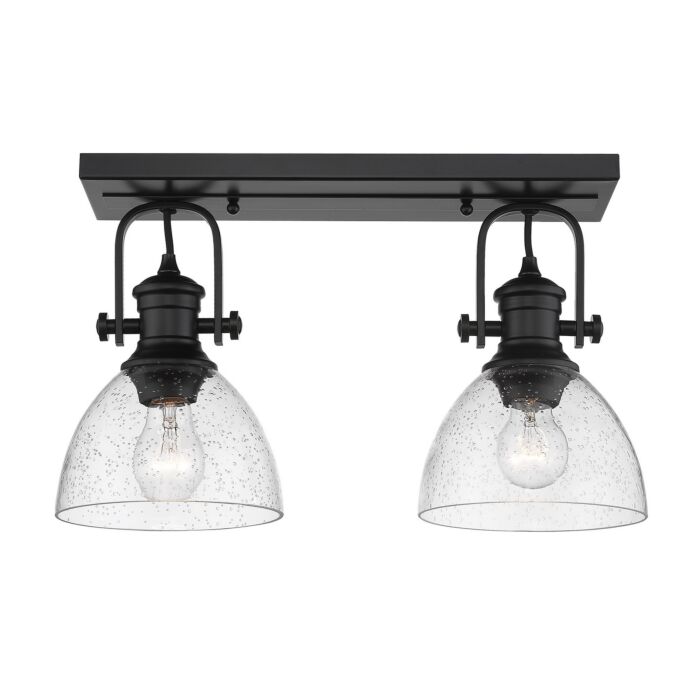 This 2-Light Semi-flush from Golden is part of the Hines collection. It comes in a Matte Black finish.- Measures 10.38" H x 6.88" L x 17.88" W