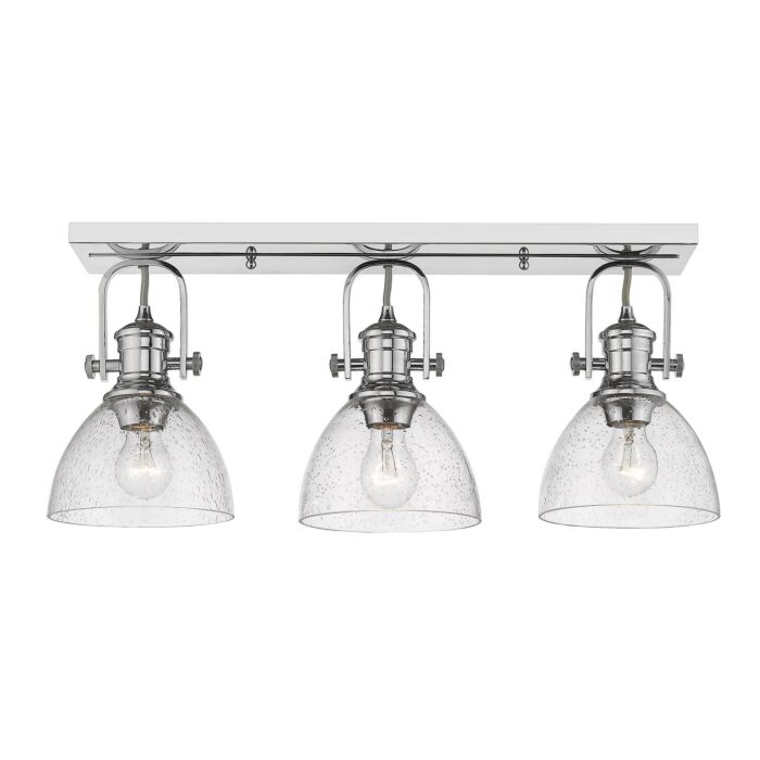 This 3-Light Semi-flush from Golden is part of the Hines collection. It comes in a Chrome finish.- Measures 10.38" H x 6.88" L x 25.13" W