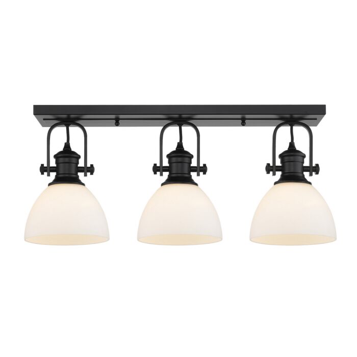 This 3-Light Semi-flush from Golden is part of the Hines collection. It comes in a Matte Black finish.- Measures 10.38" H x 6.88" L x 25.13" W