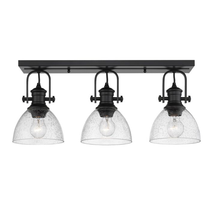 This 3-Light Semi-flush from Golden is part of the Hines collection. It comes in a Matte Black finish.- Measures 10.38" H x 6.88" L x 25.13" W