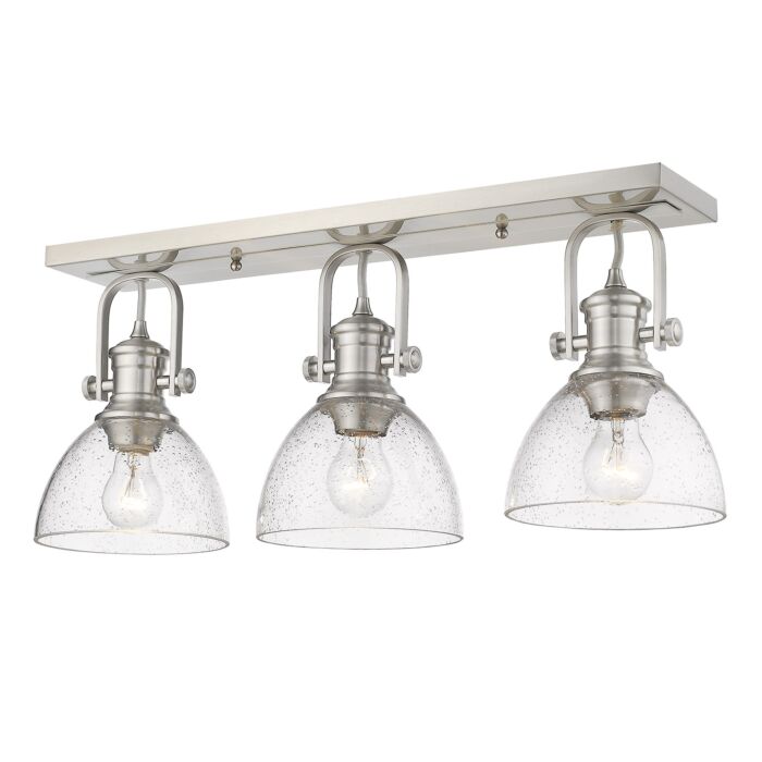 This Hines Pw 3-Light Semi-Flush Mount Ceiling Light in Pewter is manufacturered by Golden Lighting- Measures 10.38"H x 6.88" L x 25.13" W