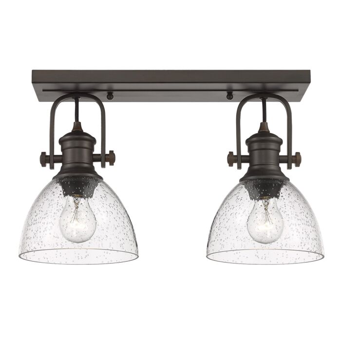 This Hines Rbz 2-Light Semi-Flush Mount Ceiling Light in Rubbed Bronze is manufacturered by Golden Lighting- Measures 10.38"H x 6.88" L x 17.88" W