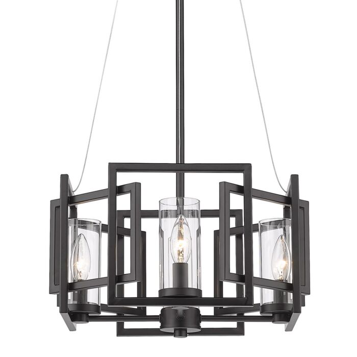 This Marco 4-Light Pendant in Matte Black is manufacturered by Golden Lighting- Measures 16.38"H x 16.0 L x 16.00" W