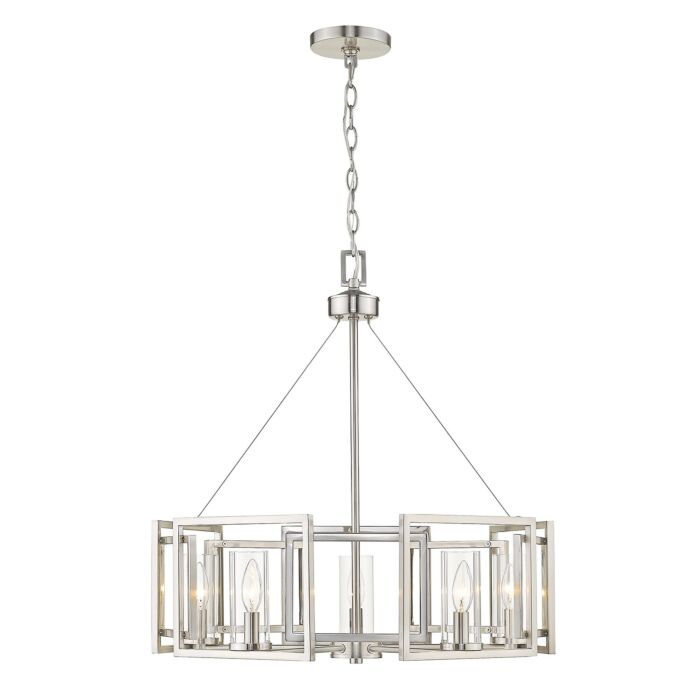 This Marco Pw 5-Light Chandelier in Pewter is manufacturered by Golden Lighting- Measures 25.5"H x 24.50" L x 24.50" W