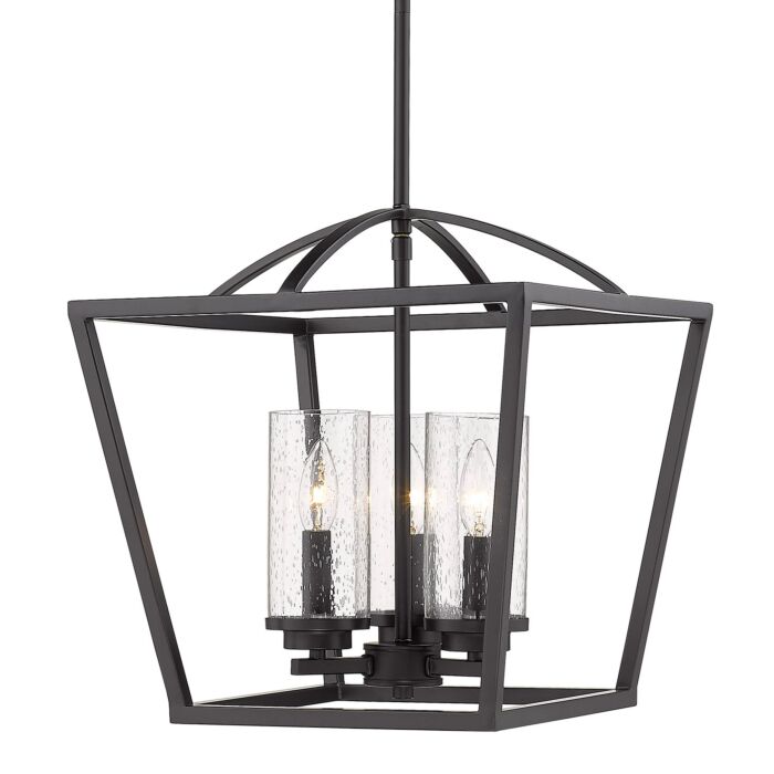 This Mercer 3-Light Pendant in Matte Black is manufacturered by Golden Lighting- Measures 15.5"H x 15.00" L x 15.00" W