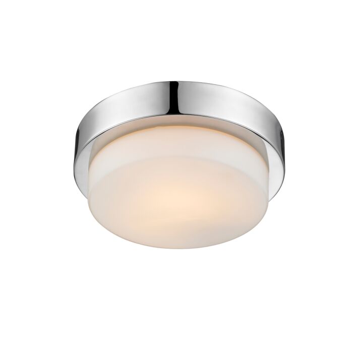 This 1-Light Flush Mount from Golden is part of the Multi-Family collection. It comes in a Chrome finish.- Measures 3.13" H x 8.50" L x 8.50" W