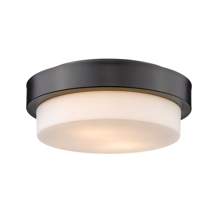 This 2-Light Flush Mount from Golden is part of the Multi-Family collection. It comes in a Matte Black finish.- Measures 4.00" H x 10.50" L x 10.50" W