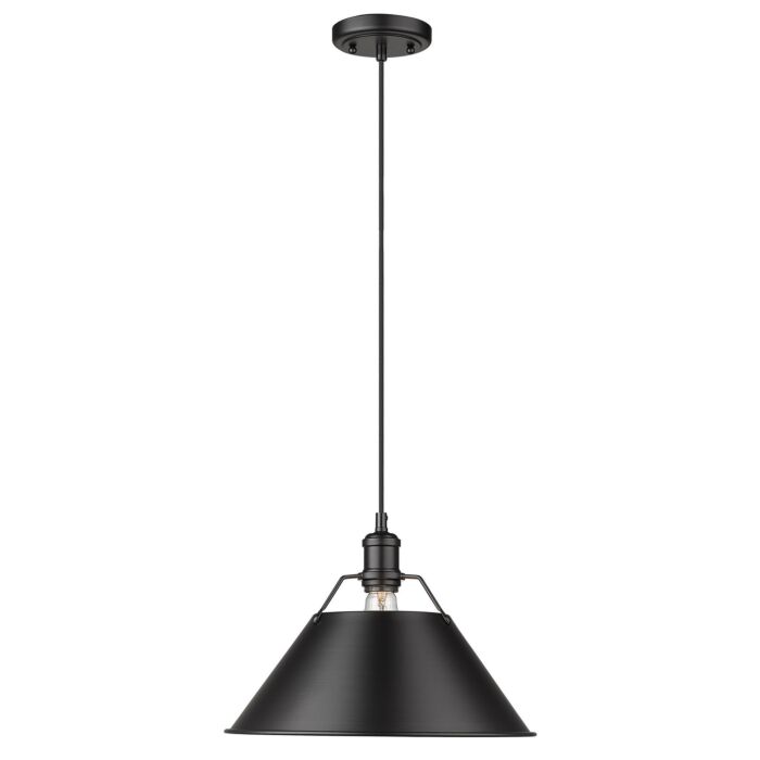 This 1-Light Pendant from Golden is part of the Orwell collection. It comes in a Matte Black finish.- Measures 10.00" H x 14.00" L x 14.00" W