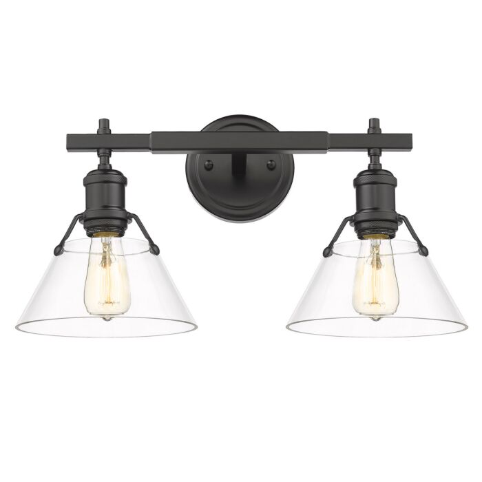 This Orwell 2-Light Bathroom Vanity Light in Matte Black is manufacturered by Golden Lighting- Measures 9.88"H x 18.25" W