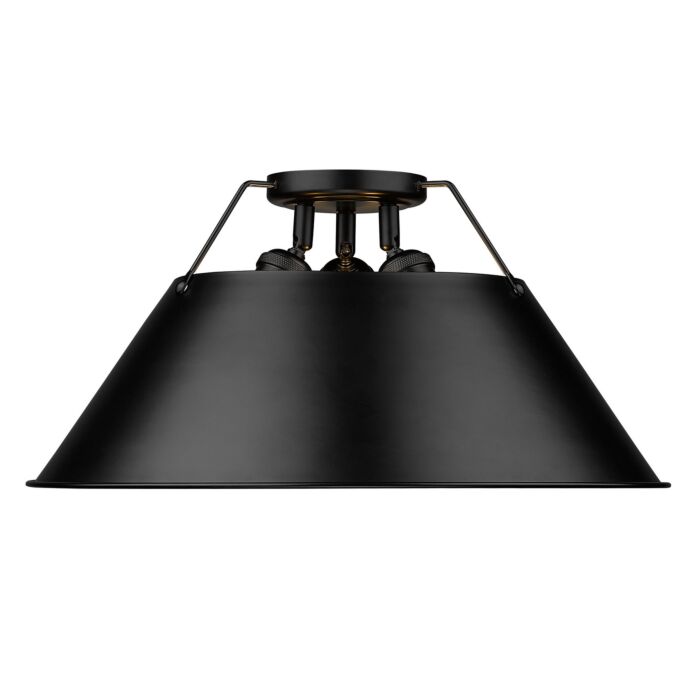 Orwell BLK Three Light Flush Mount in Matte Black by Golden